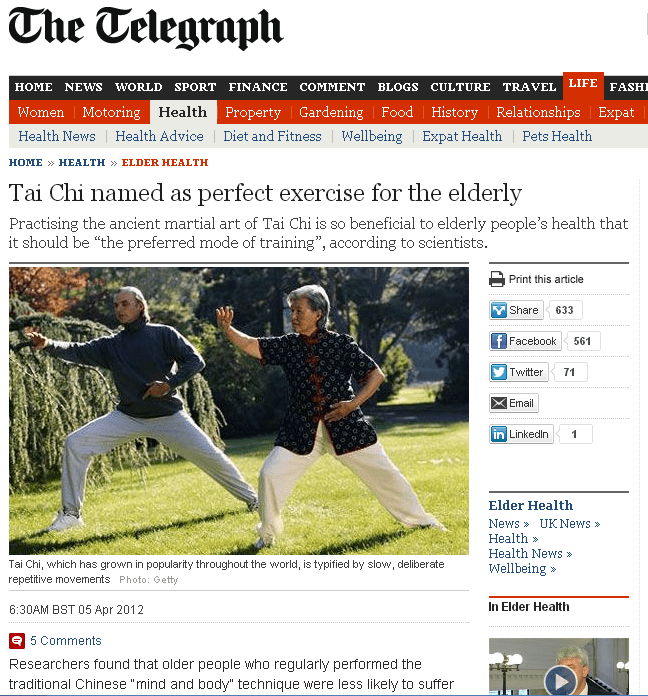 The Telegraph promoting the benefits of Tai Chi